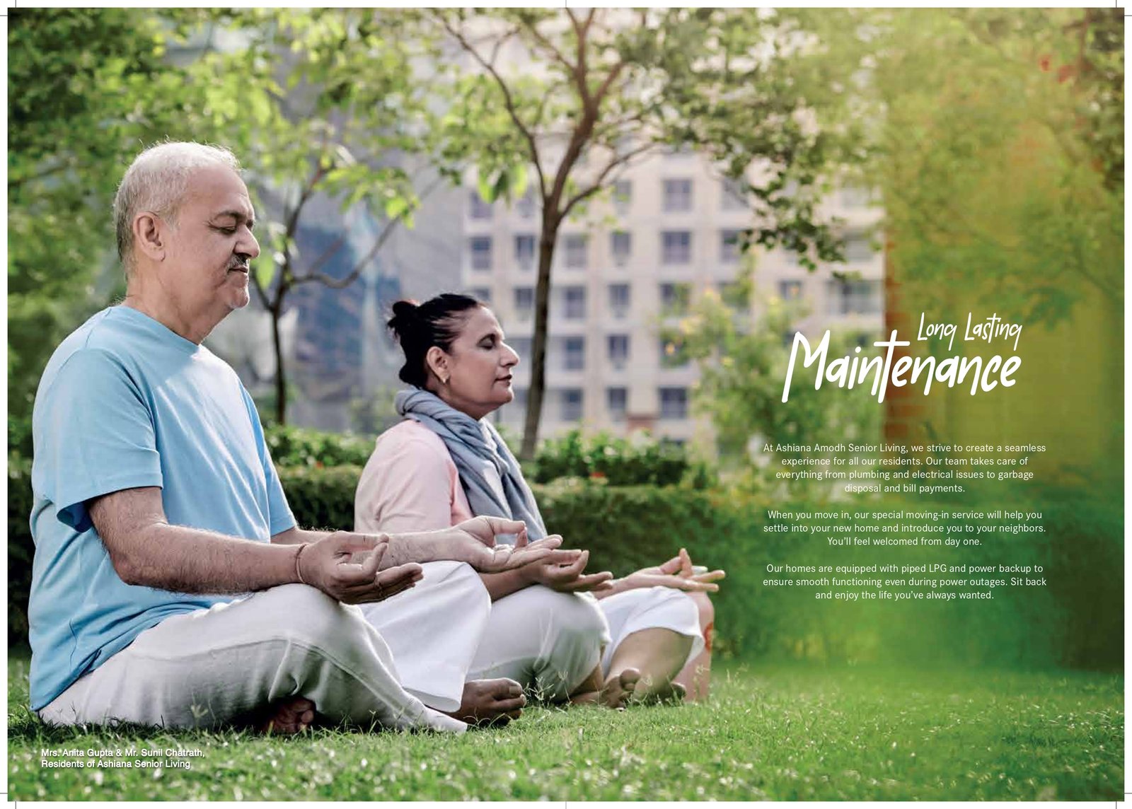 Retirement is an exciting new chapter in life, and to make it even more exciting, we at Ashiana have come up with our 7th Senior Living project in Talegaon, Pune. Well connected to Mumbai & Pune through the Mumbai Pune expressway, Ashiana Amodh offers a serene escape from the chaotic city life and brings you to a destination that is surrounded by green hills and close to Indryani River. You'll enjoy the clean air and pleasant weather year-round. Its pristine natural beauty and tranquil atmosphere make it the perfect place to call home, especially for retirees who aspire to live an active life amidst nature. Spread across 11.93 acres, Ashiana Amodh offers 1/2/3 BHK premium residences with breathtaking views of the natural scenery. To keep seniors active and healthy, 19,000 square feet club has also been planned in the very heart of the project with all the modern amenities along with dedicated spaces like a yoga lawn, swing plaza, acupressure pathway etc . Designed in an open landscape to keep seniors engaged throughout the day.